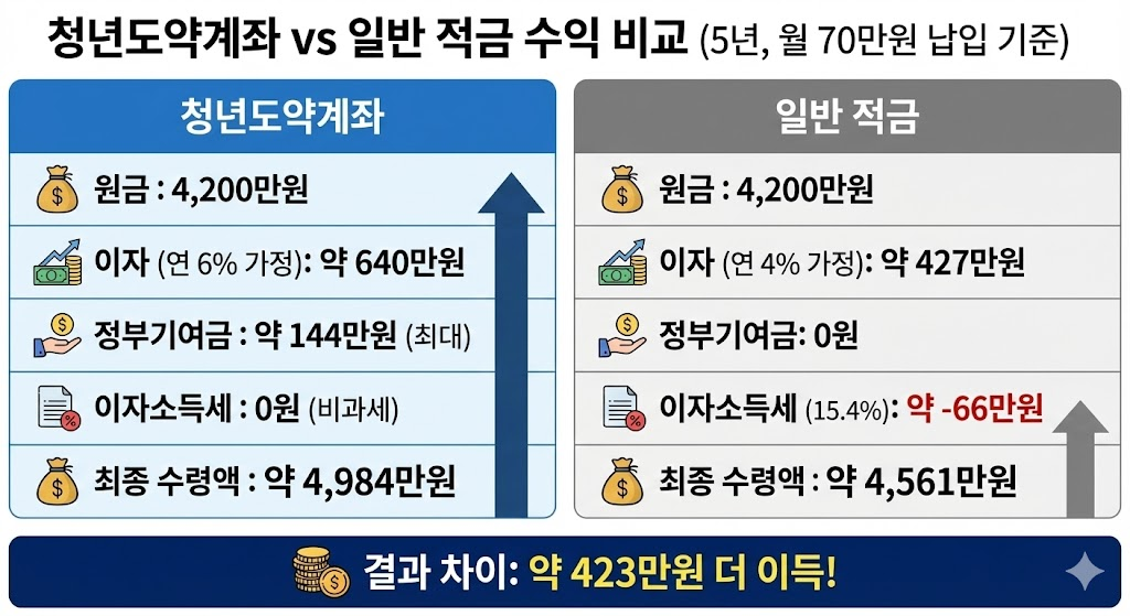 5. 청년도약계좌와 일반 적금의 수익 비교